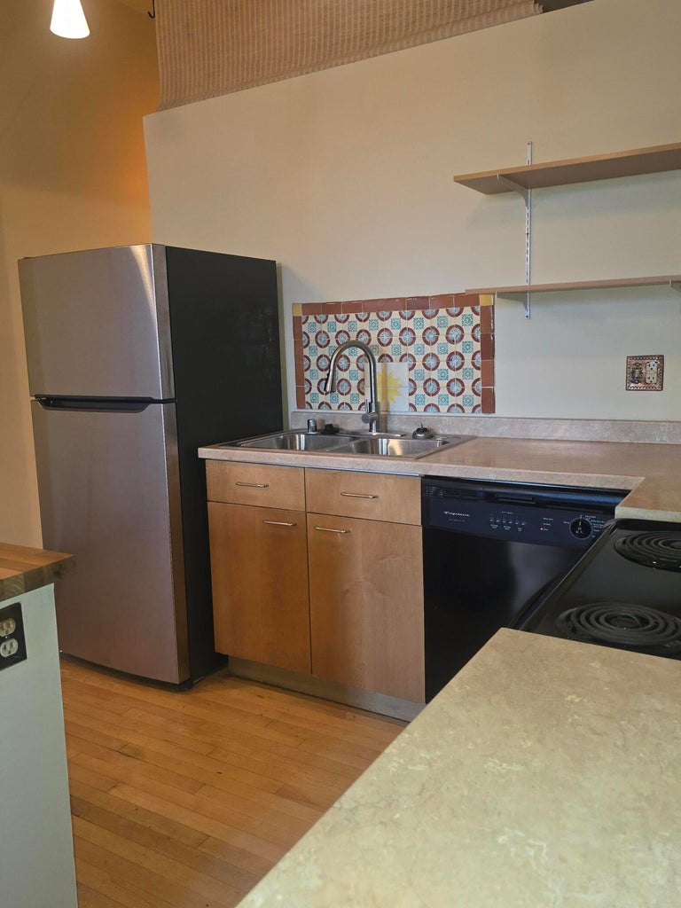 Discover this delightful studio/1 bath loft located at 300 Tijeras NE with fresh paint and new countertops. Spanning 560 square feet, this historic gem built in 1938, remodeled in 2005, combines classic charm with modern conveniences. The unit is equipped with essential appliances, including a microwave, range oven, refrigerator, dishwasher, and garbage disposal, making it perfect for everyday living. Nestled in a vibrant neighborhood, this condo is close to UNM, hospitals and downtown. High-speed internet and cable available. The central heating and cooling systems ensure year-round comfort. With shared washers and dryers on-site. Come to your cozy retreat in the heart of East Downtown.
