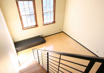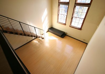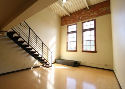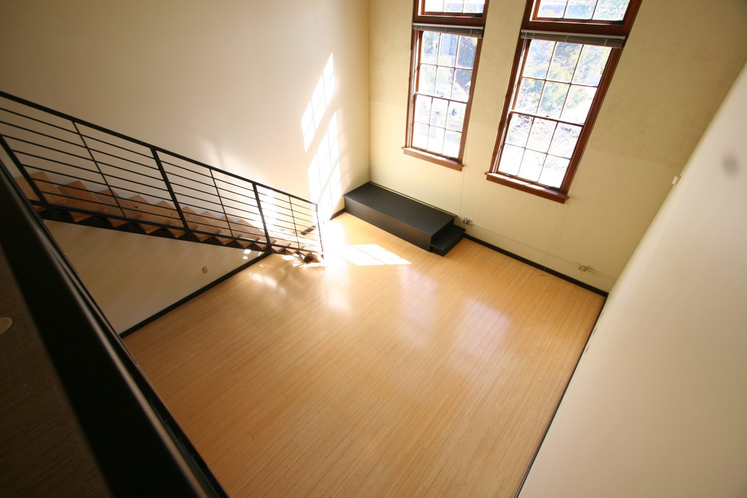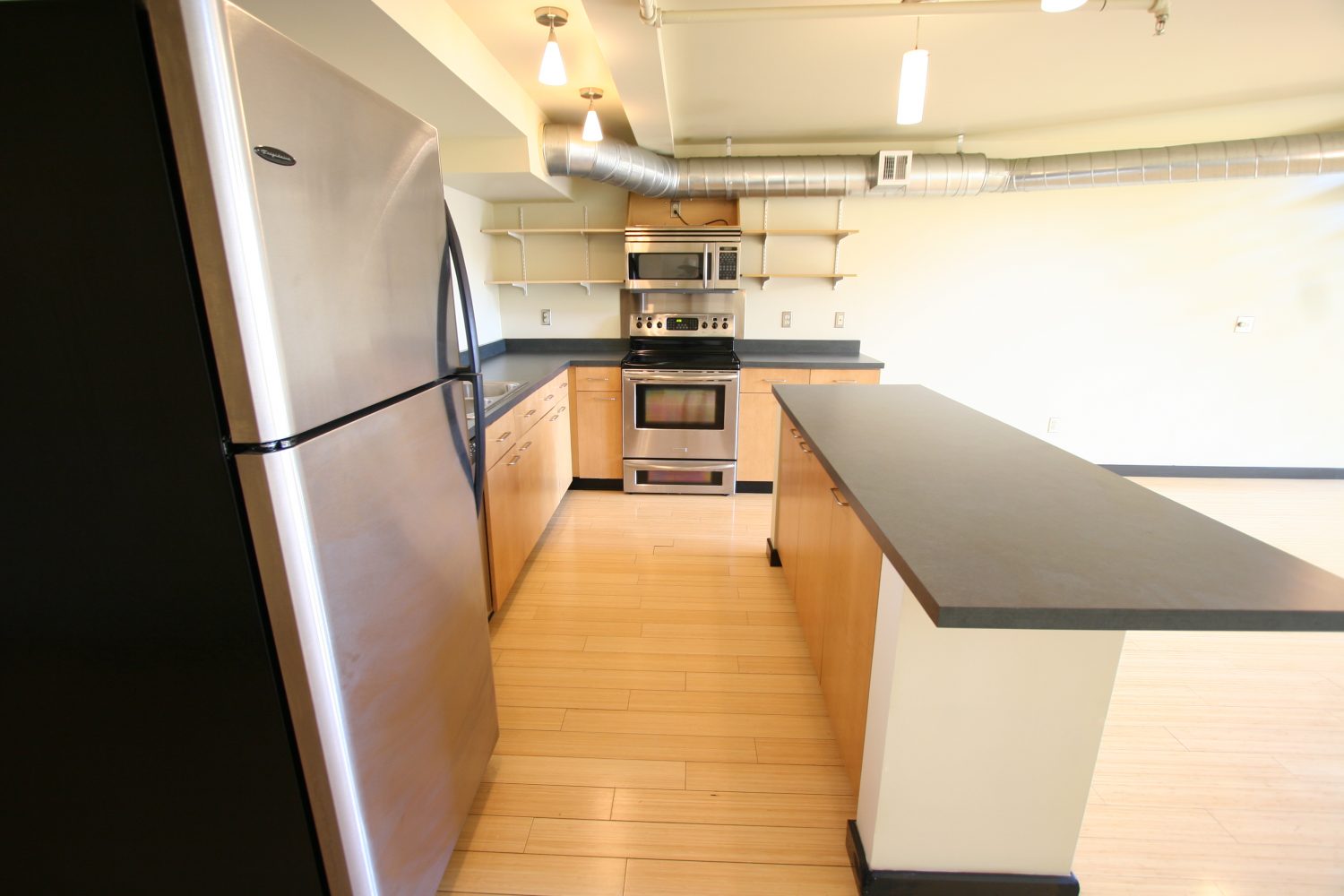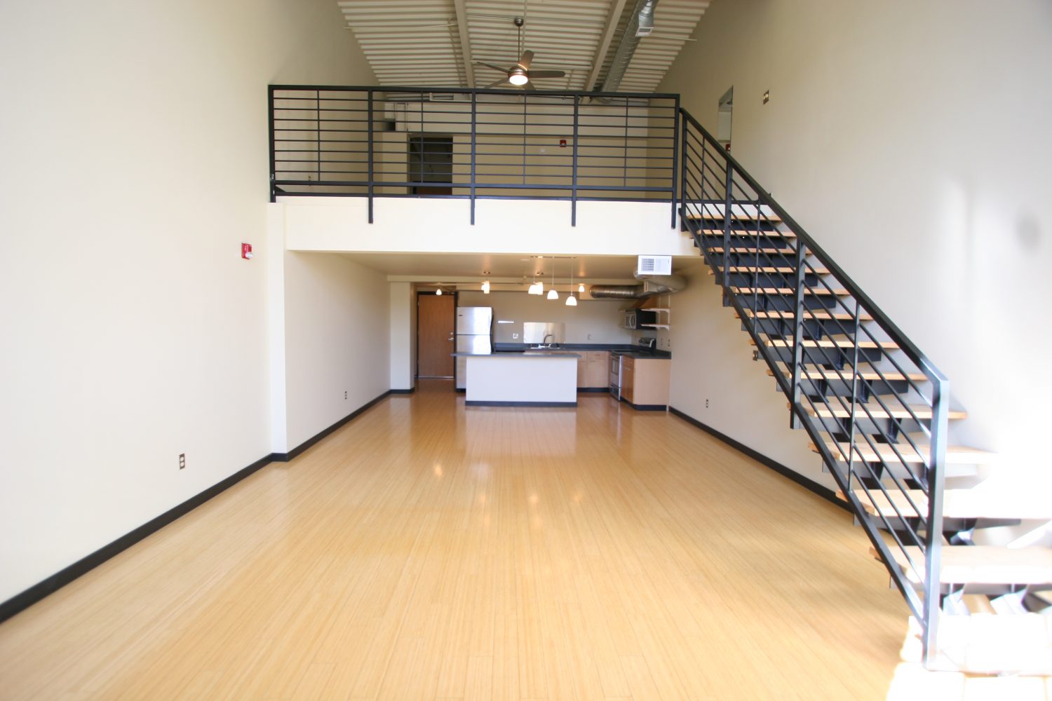 Approximately 1,245 square feet, this 2-level loft is located in the east wing/top floor of the 1938-built historic Gymnasium building and features east-facing operable windows, island kitchen, stainless steel appliances (refrigerator, dishwasher, range/oven, microwave, disposal), 2 full baths, wood floors and washer/dryer connections. Laundry/exercise facility/elevator in building. Access to beautifully landscaped secure courtyard with grill, fountains, and seating/umbrellas.
