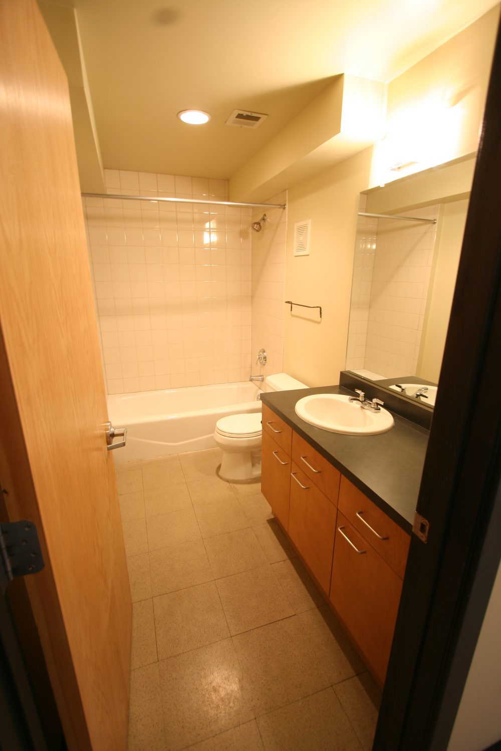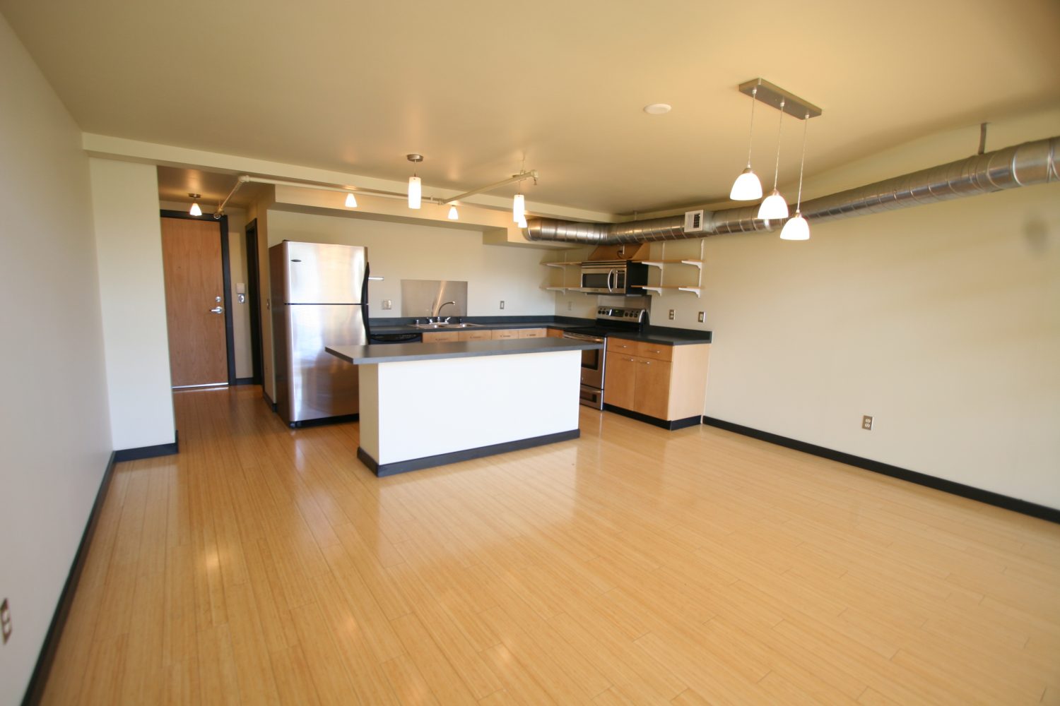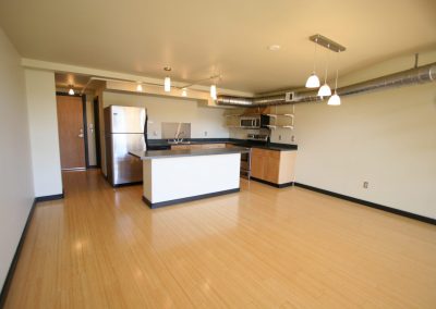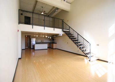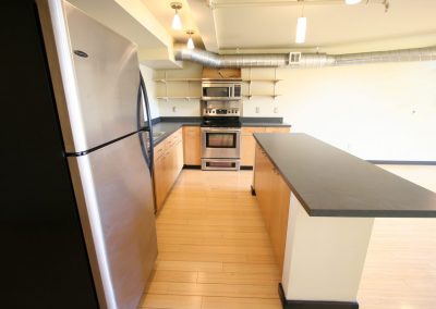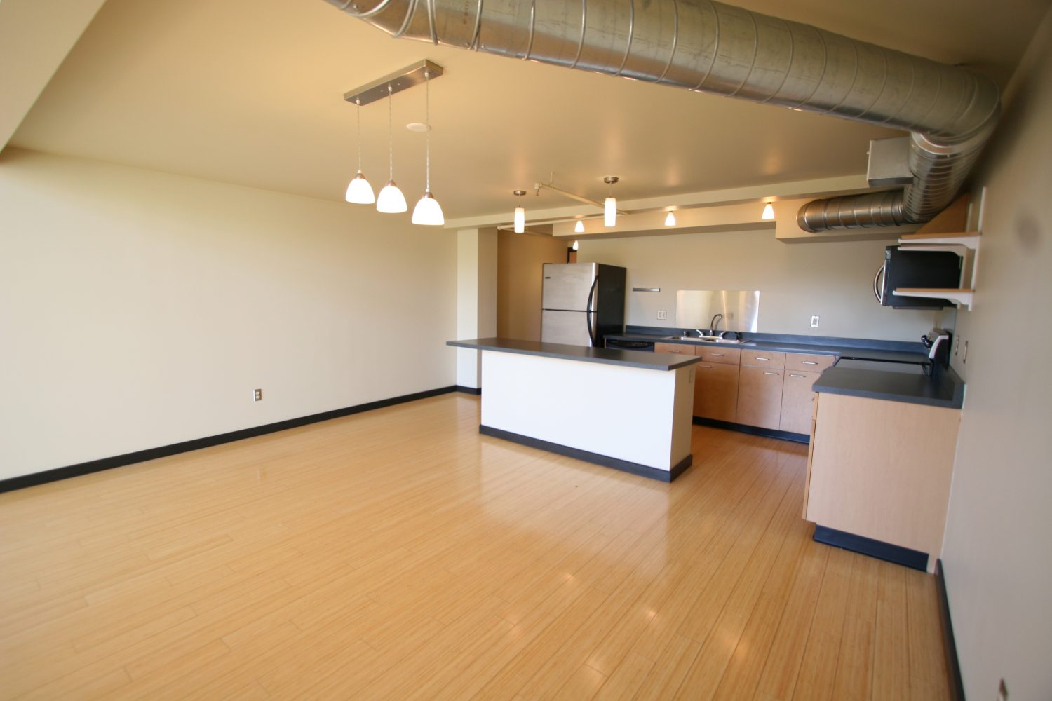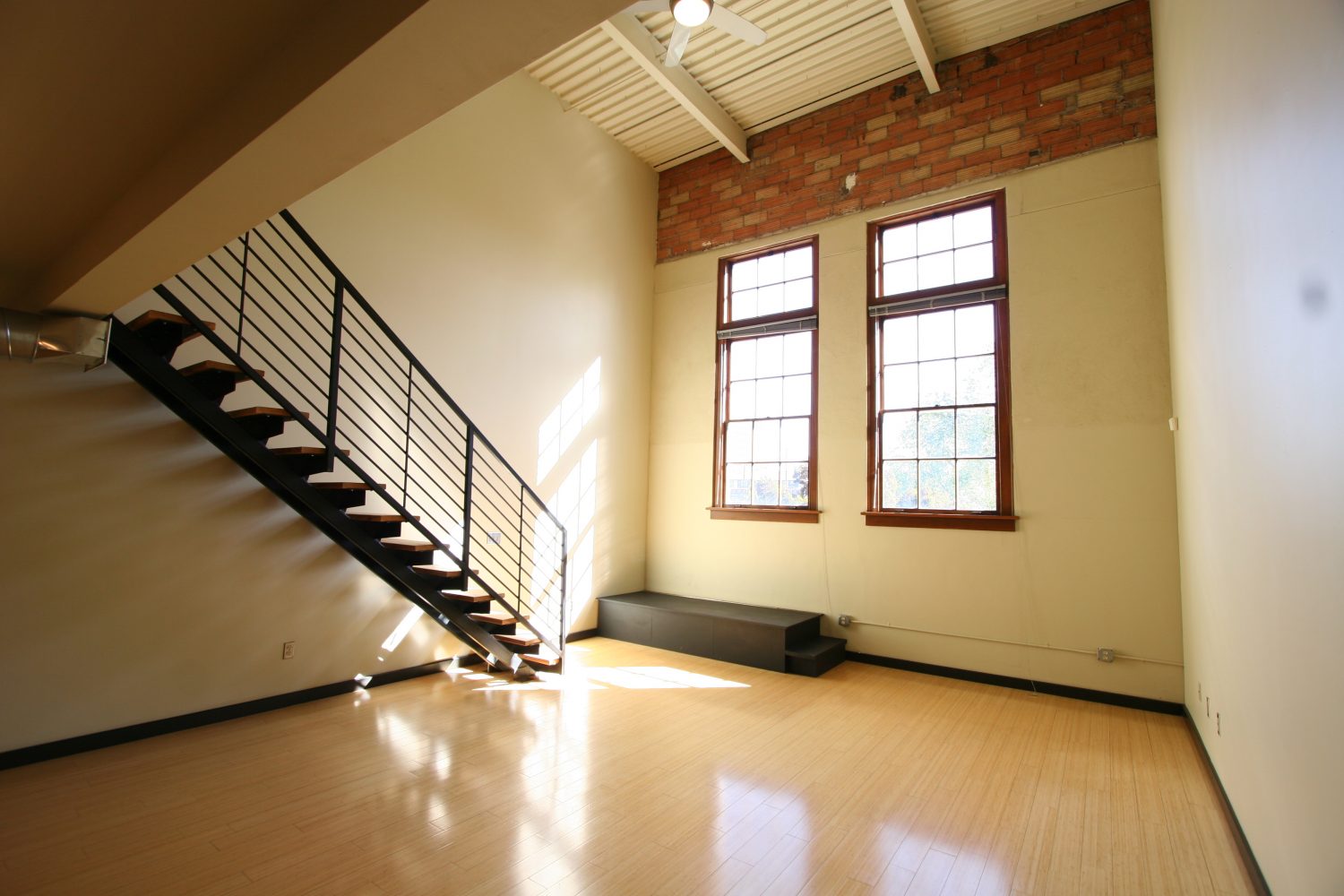 Approximately 1,245 square feet, this 2-level loft is located in the east wing/top floor of the 1938-built historic Gymnasium building and features east-facing operable windows, island kitchen, stainless steel appliances (refrigerator, dishwasher, range/oven, microwave, disposal), 2 full baths, wood floors and washer/dryer connections. Laundry/exercise facility/elevator in building. Access to beautifully landscaped secure courtyard with grill, fountains, and seating/umbrellas.