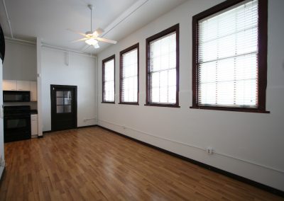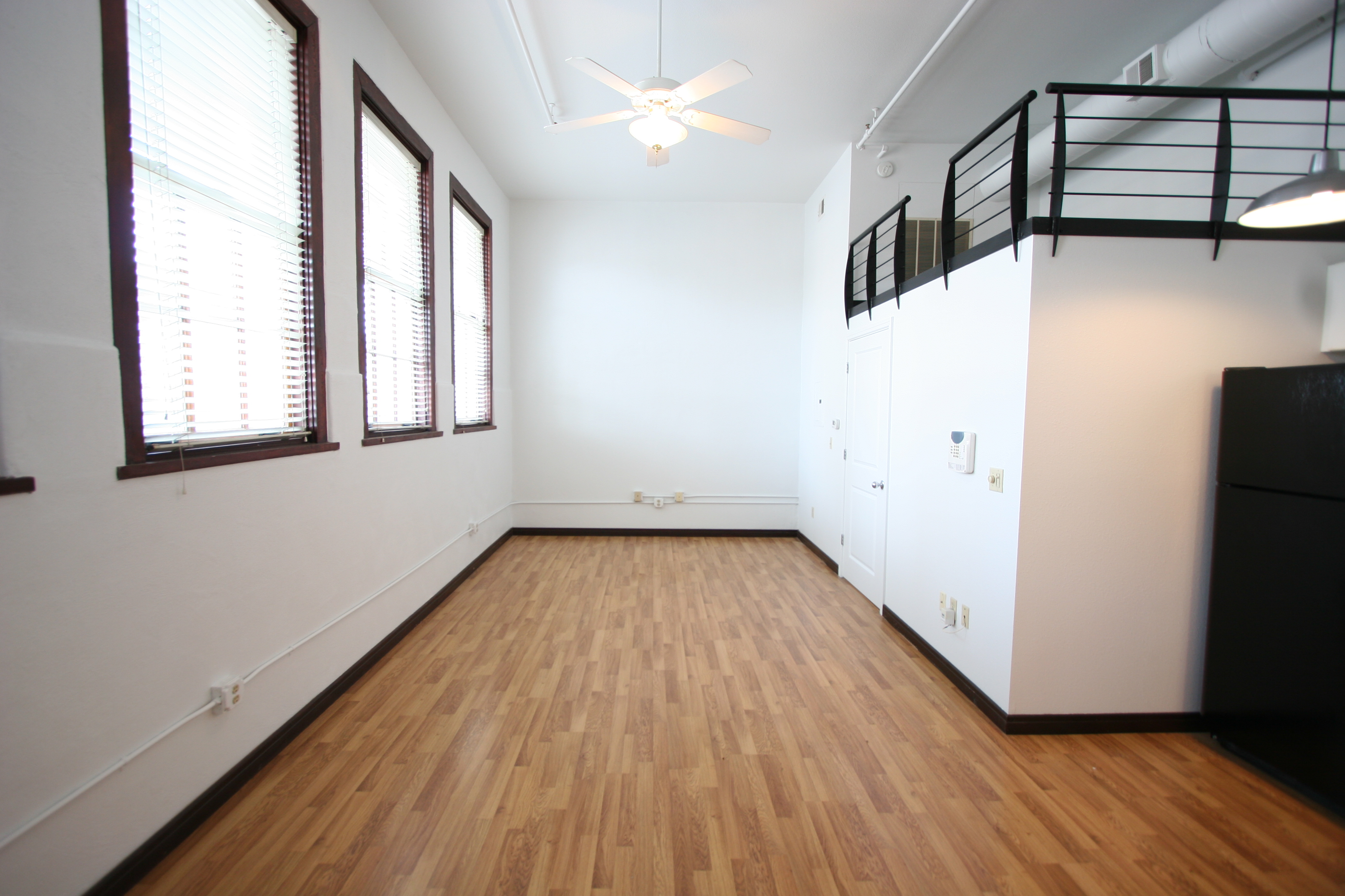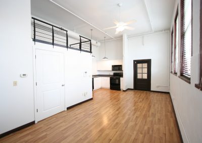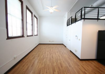 Approximately 531 square feet, this ground-level loft in the 1914-built historic Old Main building features west-facing operable wooden windows with a city view, spacious kitchen (refrigerator, oven/range, microwave, dishwasher, disposal), bright white walls, laminate floors, full bath and custom closet. Laundry/exercise facility/elevator in building. Access to beautifully landscaped secure courtyard with grill, fountains, and seating/umbrellas.