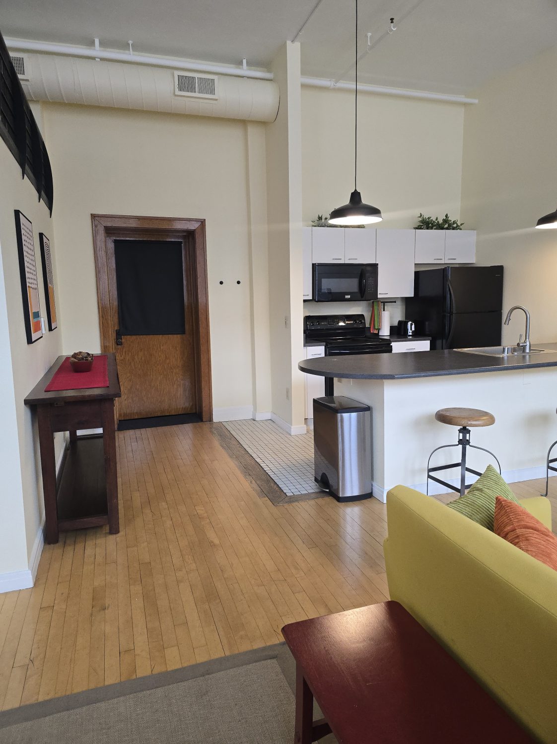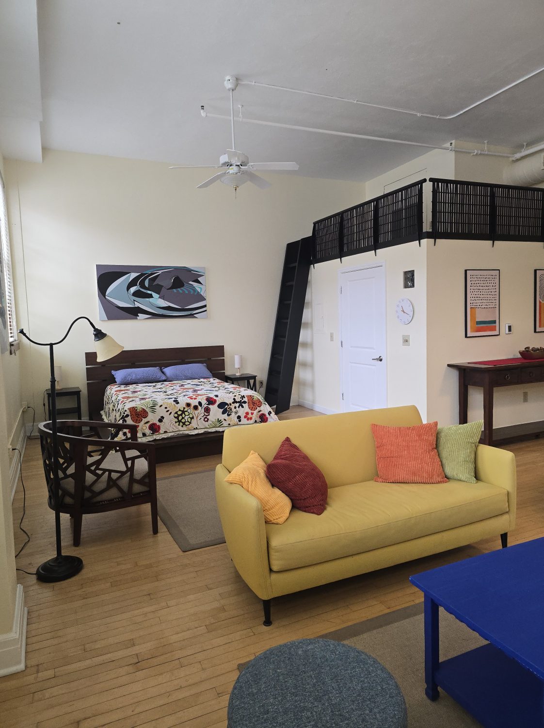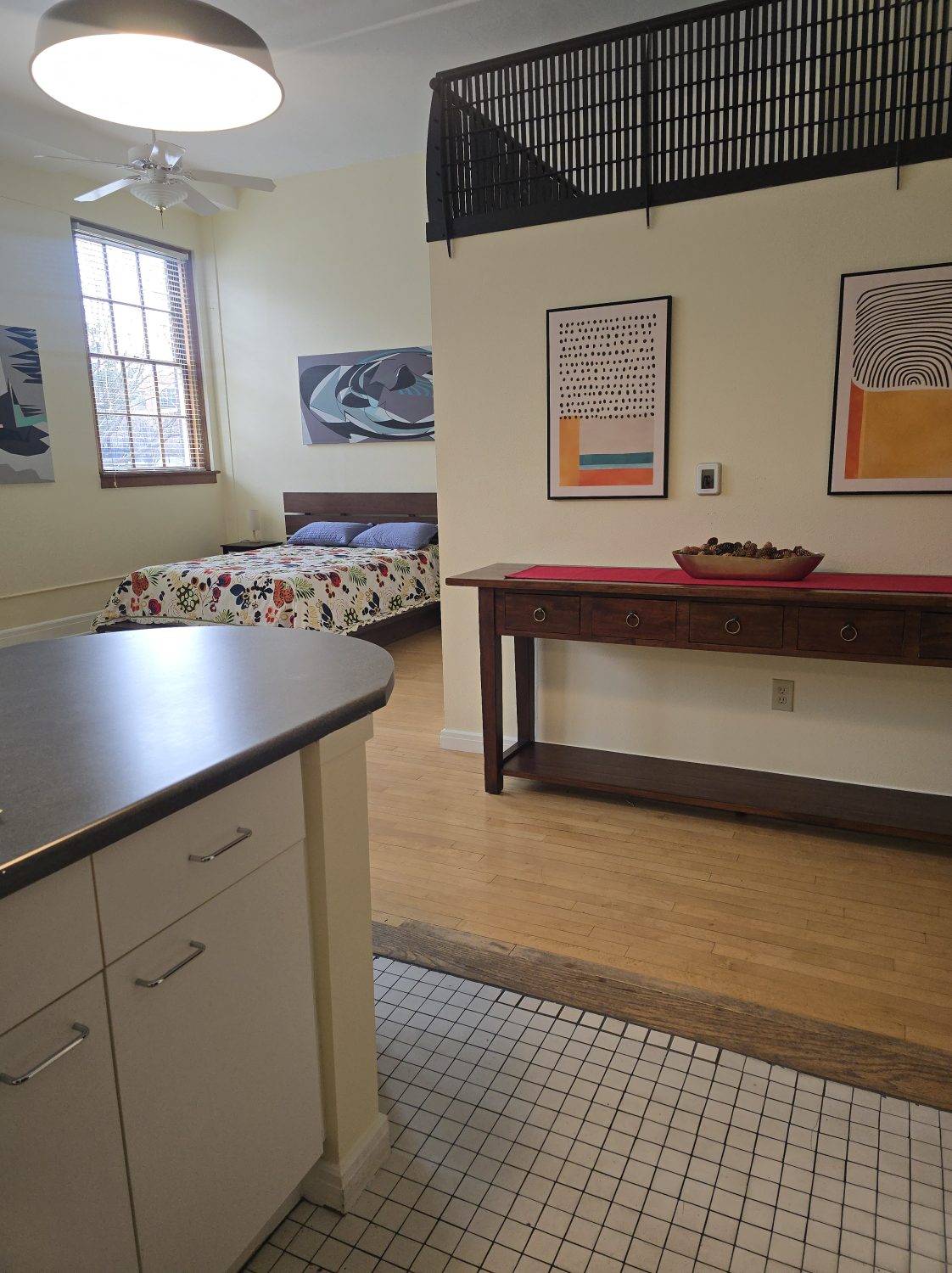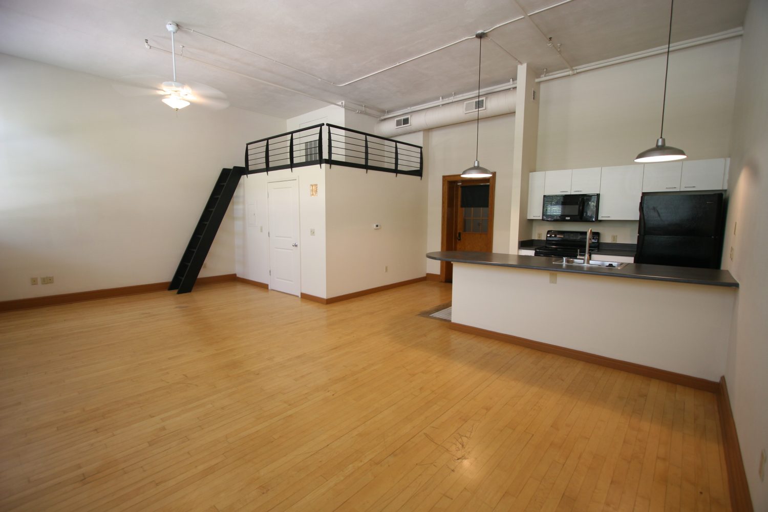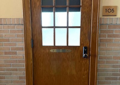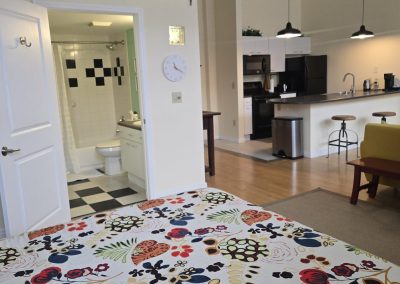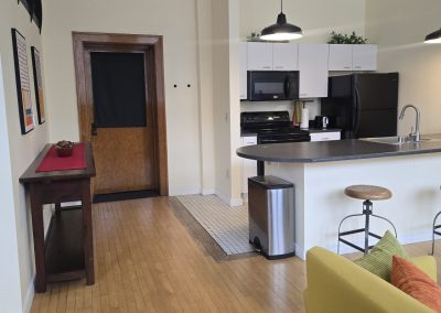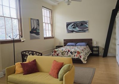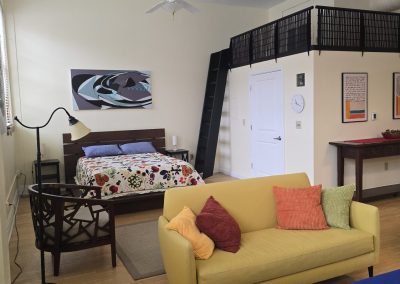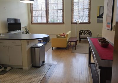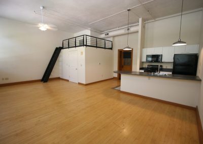 Approximately 667 square feet, Classroom Loft 105 is located on the first floor of the historic 1935-built Classroom building. The Loft features an bar kitchen with refrigerator, oven/range, microwave, dishwasher, and full bath, as well as the original Maple wood floors and chalkboard, 14-foot-tall ceilings, and 4 east-facing operable wooden windows with a view of the mature-tree filled secure courtyard below. Three spacious lockers in the hallway outside the loft are provided for storage. Laundry and elevator in building; access to laundry/exercise room in Old Main building. Courtyard features community grill, fountains and seating.